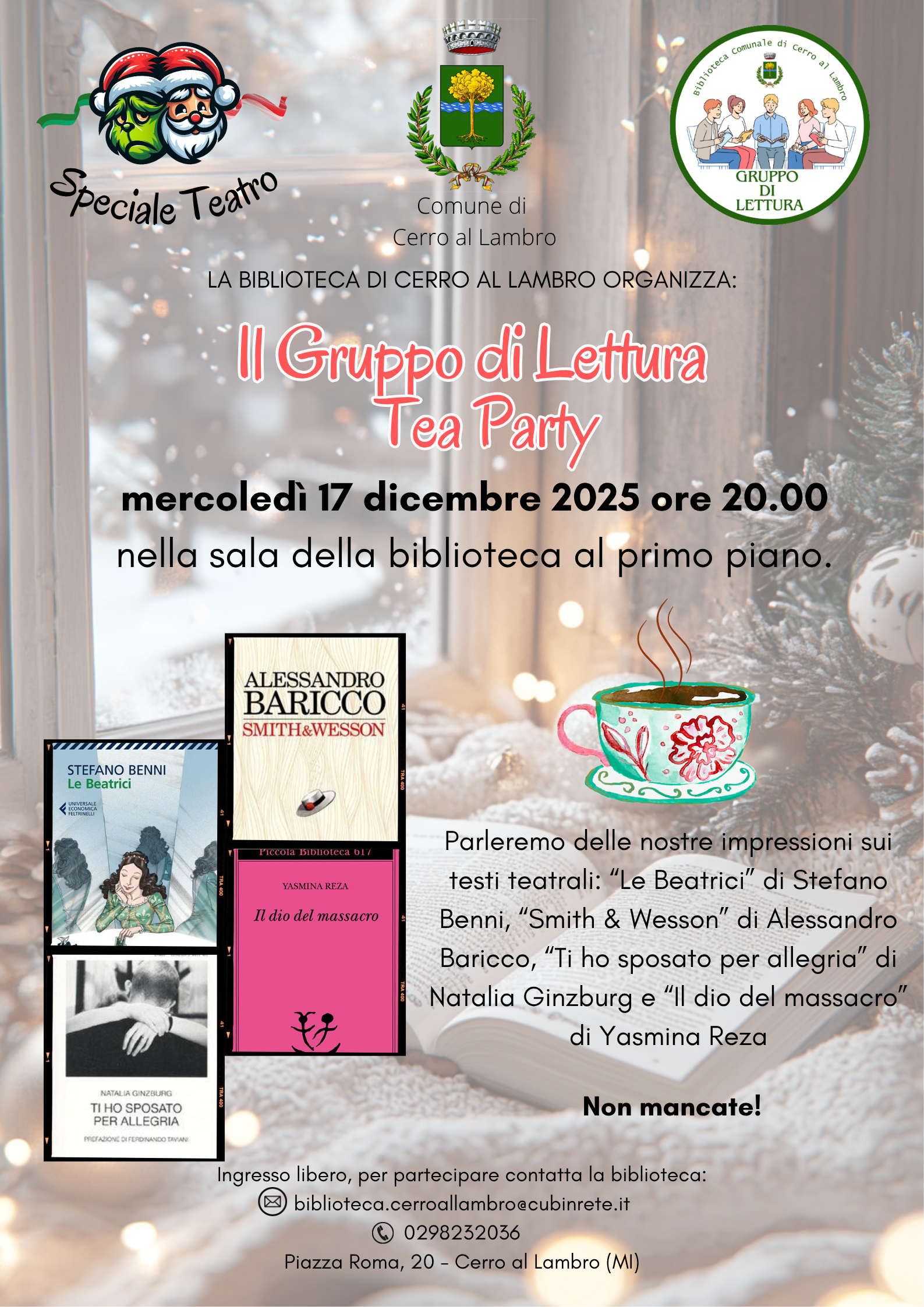 Per info e iscrizioni al GDL della Biblioteca Comunale contattare tramite mail: biblioteca.cerroallambro@cubinrete.it