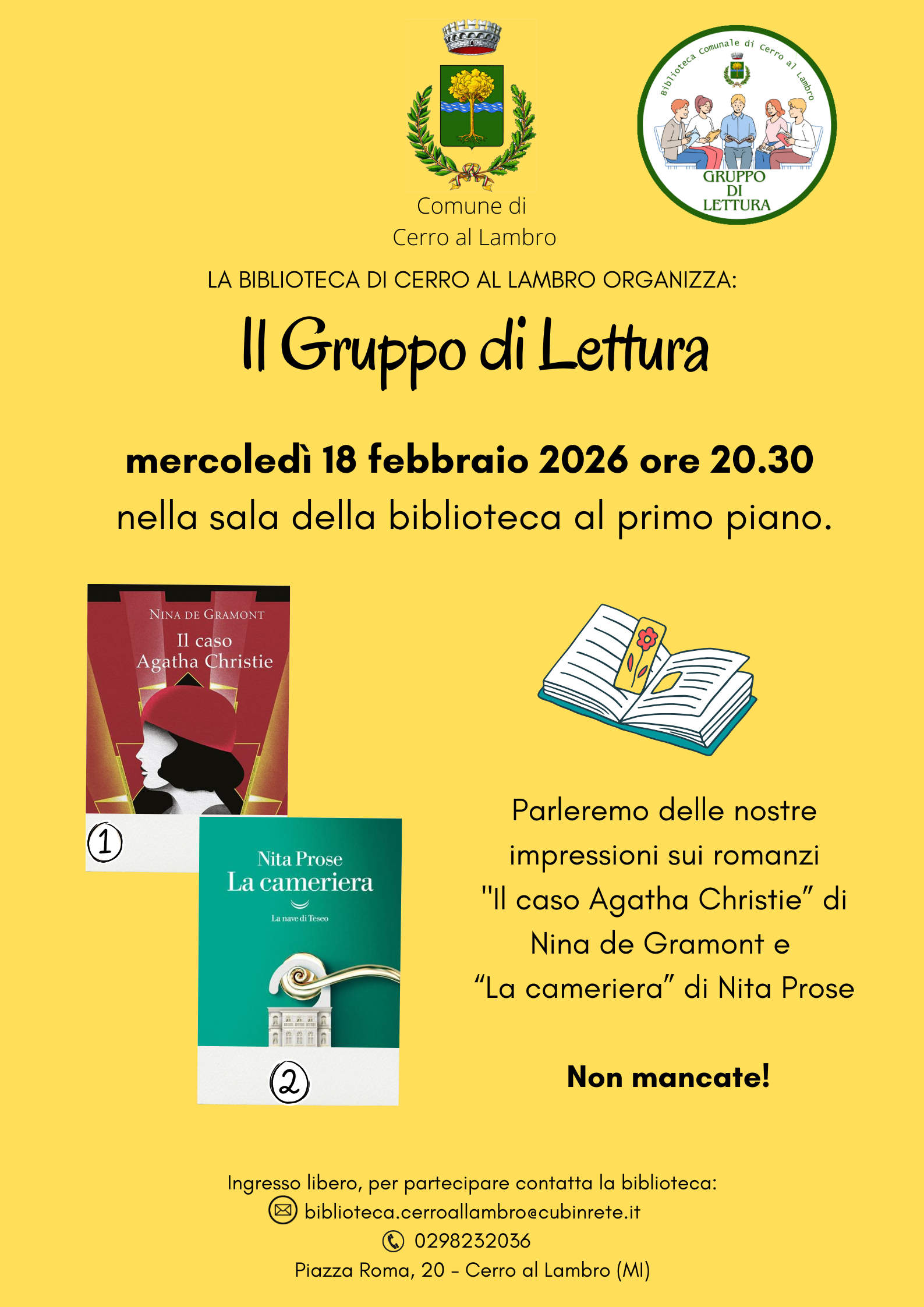 Per info e iscrizioni al GDL della Biblioteca Comunale contattare tramite mail: biblioteca.cerroallambro@cubinrete.it