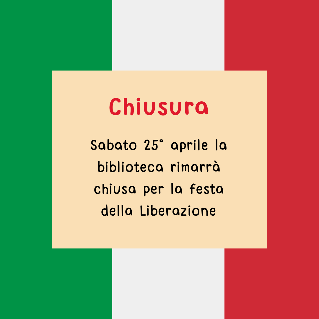 Si avvisano i cittadini che in occasione dell'anniversario della liberazione d'Italia SABATO 25 APRILE la biblioteca comunale rimarrà chiusa.